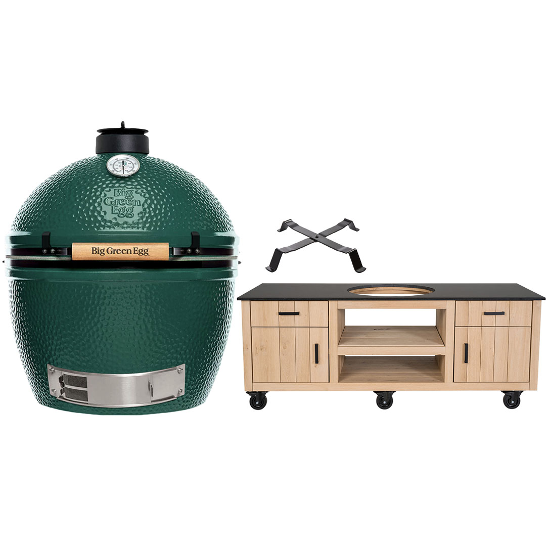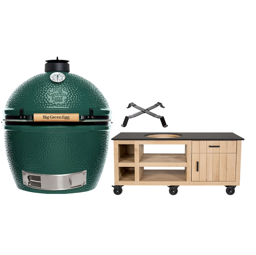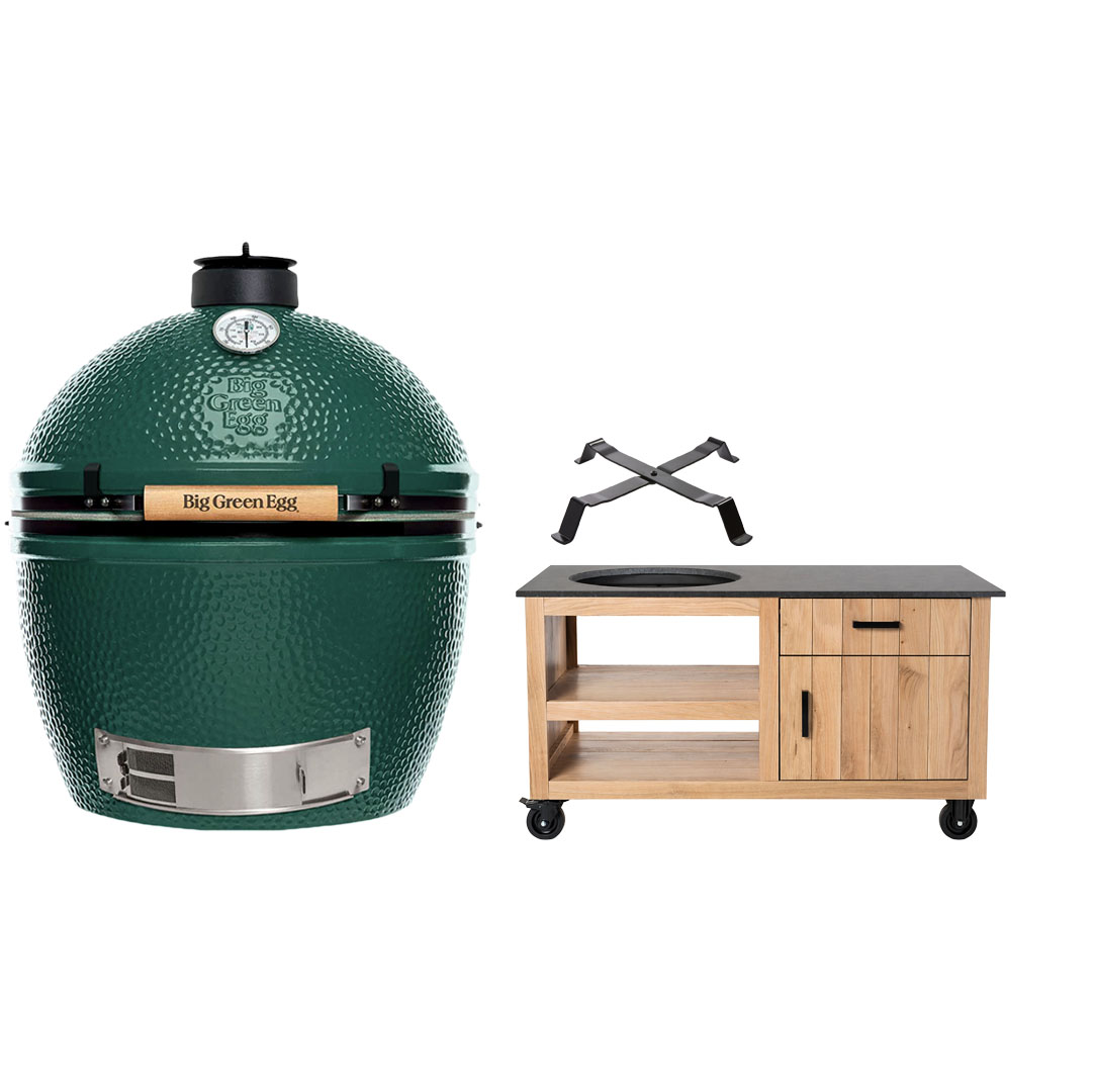 Big Green Egg The Onyx XL + Fraaii Tafel Meranti Storage