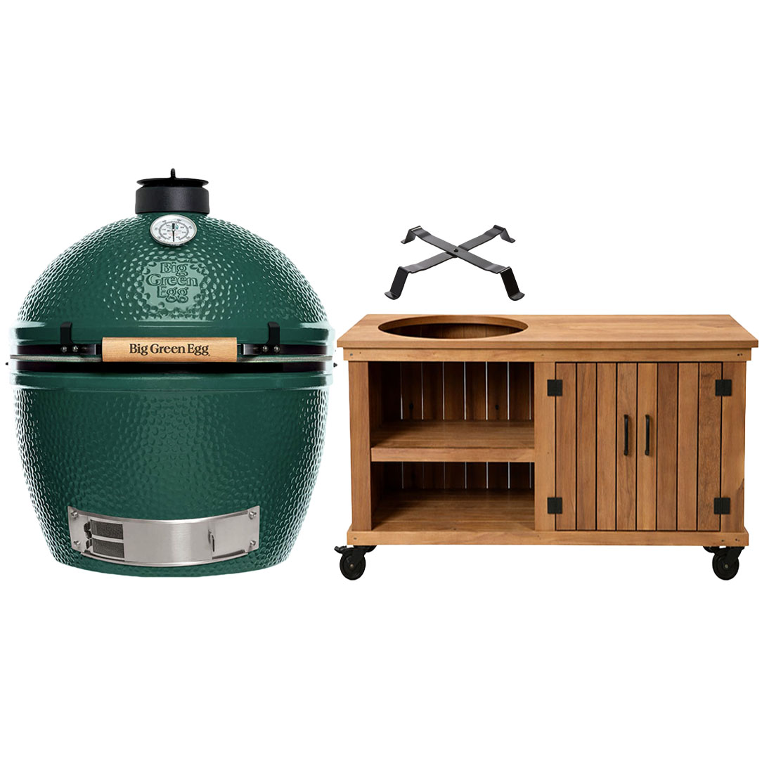 Big Green Egg Large + Fraaii Tafel Meranti Storage