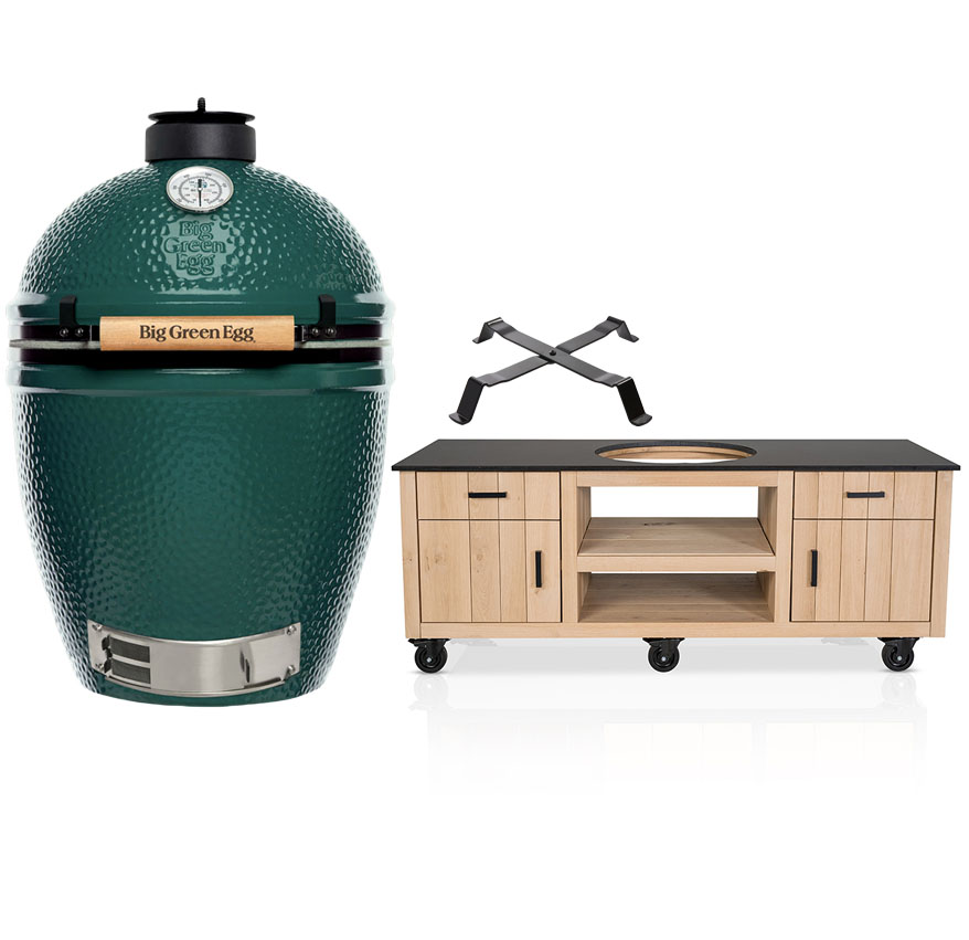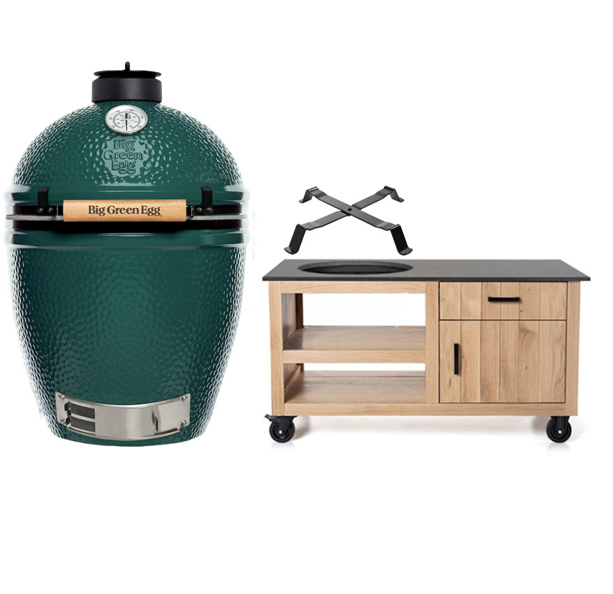 Big Green Egg Large + Fraaii Tafel Eikenhout Compact