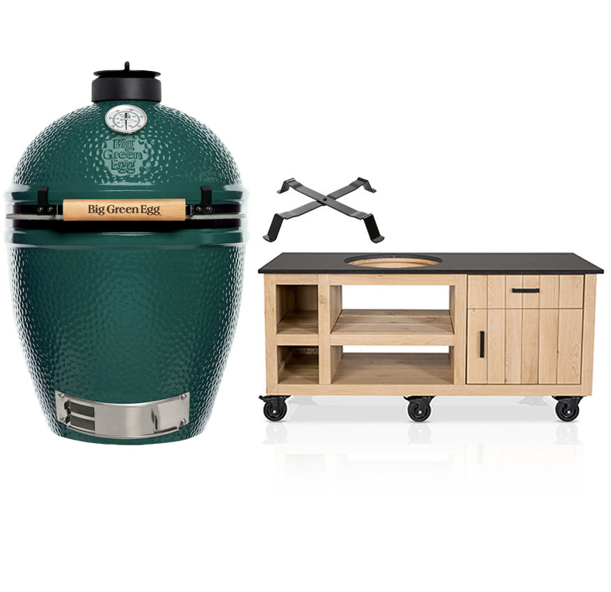 Big Green Egg Large + Fraaii Tafel Eikenhout Classic II