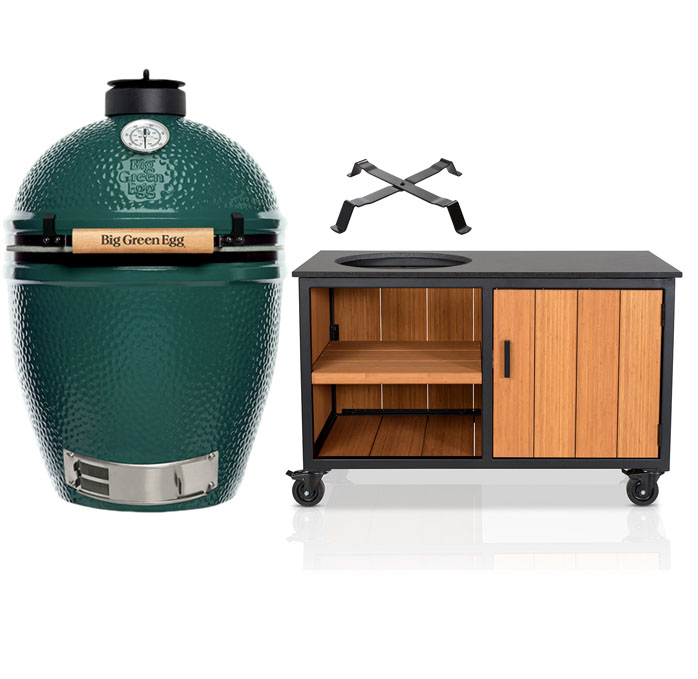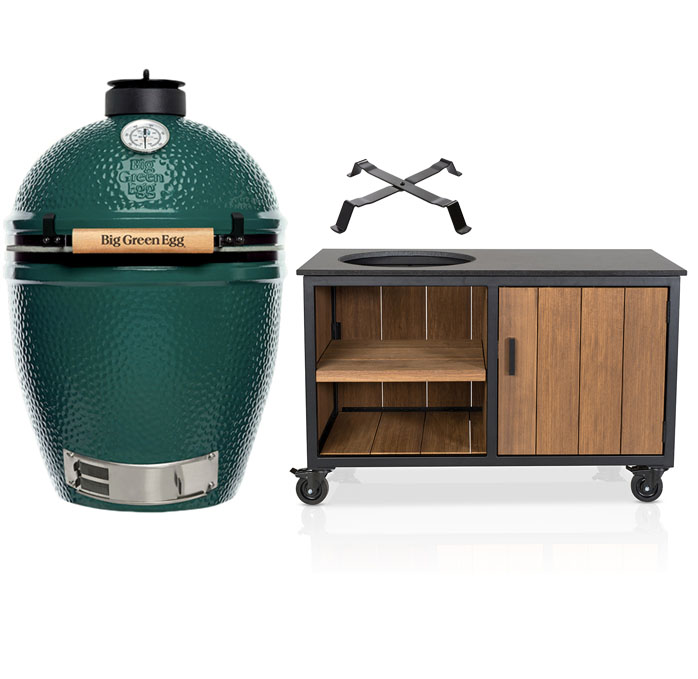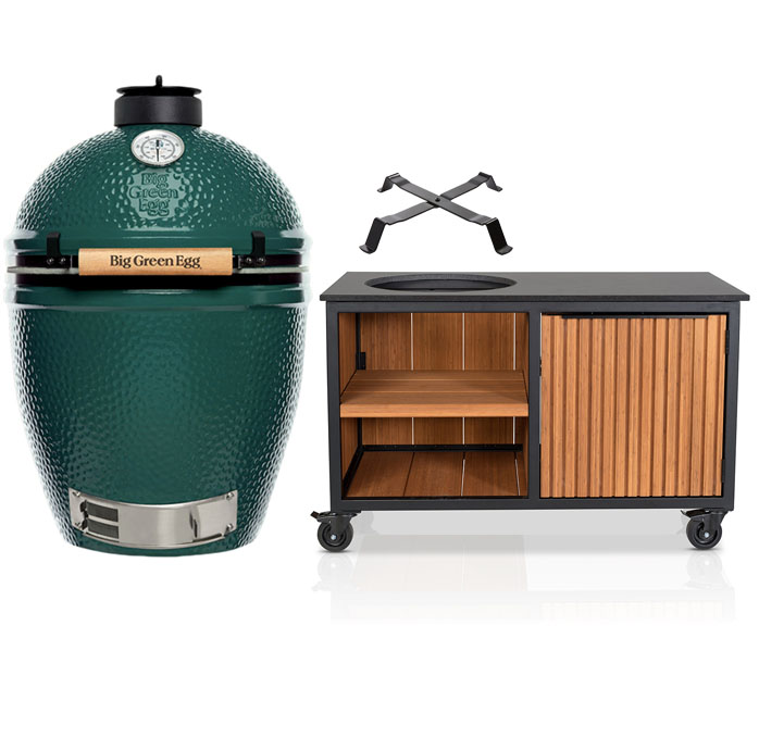 Big Green Egg The Onyx Large + Fraaii Tafel Meranti Storage