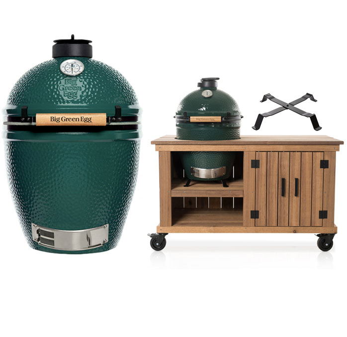 Big Green Egg Large + Fraaii Tafel Meranti Storage