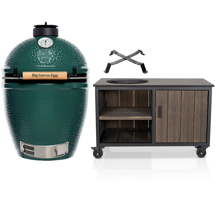 Big Green Egg The Onyx XL + Fraaii Tafel Bamboo Graphite Storage