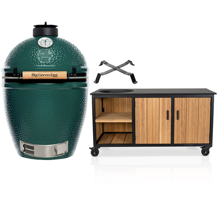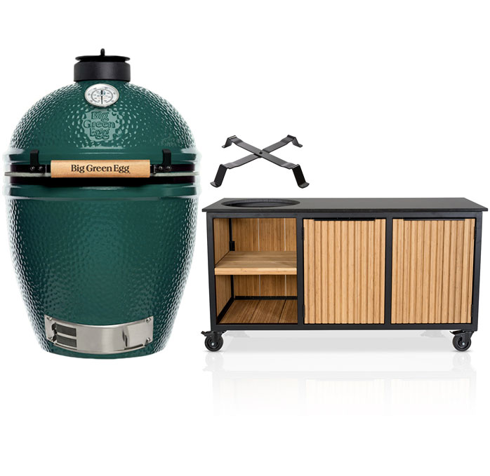 Big Green Egg XL + Fraaii Tafel Bamboo Natural Inferno