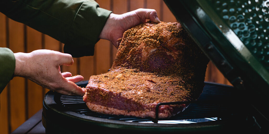 Slow cooking omvat verschillende technieken, zoals stoven en het langzaam garen van grote stukken vlees. Bij deze laatste techniek, waarbij de eiwitten in het vlees zeer langzaam stollen, wordt het resultaat extreem mals. Het langzaam garen van vlees gebeurt altijd volgens de indirecte methode. Eenmaal in de EGG geplaatst, hoef je er niet meer naar om te kijken totdat de gewenste kerntemperatuur is bereikt. Deze methode is perfect voor het bereiden van bijvoorbeeld een groot stuk buikspek, pulled pork, pulled chicken of brisket. Het vlees kan direct geserveerd worden of verder verwerkt worden. Pulled pork, chicken of brisket smaakt heerlijk op een broodje, maar kan ook dienen als garnituur in een salpicon voor mini kroketjes.