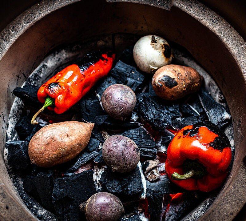 Door groenten te poffen, karamelliseren de natuurlijke suikers in de groenten, wat in combinatie met de rokerige smaak van de Big Green Egg zorgt voor een unieke en intense smaakbeleving. Veel groenten kunnen direct na het poffen geserveerd worden, zoals gepofte aardappelen, wortelgroenten of gepofte bieten. Je kunt ook eens gepofte kastanjes als snack op het menu zetten. Daarnaast is deze techniek perfect voor het voorbereidende werk, gebruik de gepofte groenten als basis voor crèmes, puree of soep. Bijna alle knol- en wortelgroenten zijn geschikt om te poffen, maar denk ook aan paprika’s, uien, prei en aubergines. Een baba ganoush op basis van gepofte aubergine zal zeker in de smaak vallen. Voor de meeste groenten kun je ook de restwarmte van de EGG gebruiken. Leg de groenten op het rooster, sluit de luchtregelaar en de rEGGulator zodat de houtskool dooft en de restwarmte in de keramiek de groenten gaart. Een duurzame en smaakvolle methode!