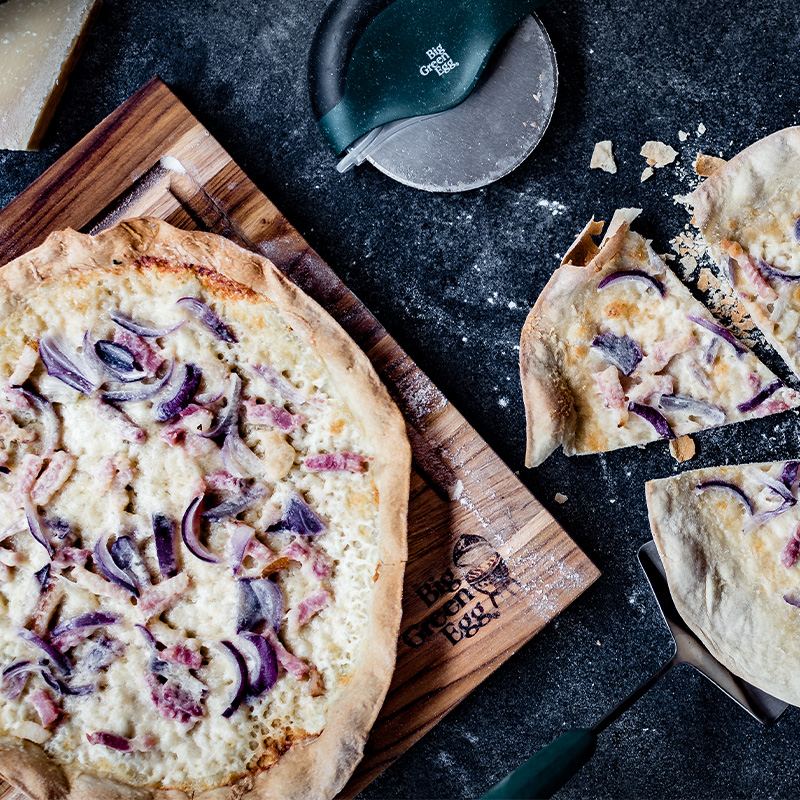 De Big Green Egg fungeert als een volwaardige oven waarin je diverse bakgerechten kunt bereiden. Of het nu gaat om broden, gebak, pasteien, quiches, of andere ovengerechten, je kunt ze allemaal in de Big Green Egg bakken of garen. Met de Baking Stone in combinatie met de convEGGtor en het roestvrijstalen rooster kan de EGG zelfs worden omgetoverd tot een steenoven. Hoewel het bakken van brood of gebak in de horeca vanwege de capaciteit misschien niet altijd praktisch is, is de Big Green Egg een waardevolle toevoeging voor snelle, hete bereidingen zoals het bakken van pizza’s en flammkuchen. Dankzij het brede temperatuurbereik van de Big Green Egg tot 350 °C, kun je pizza’s en flammkuchen bakken op de exacte temperatuur die je wenst.